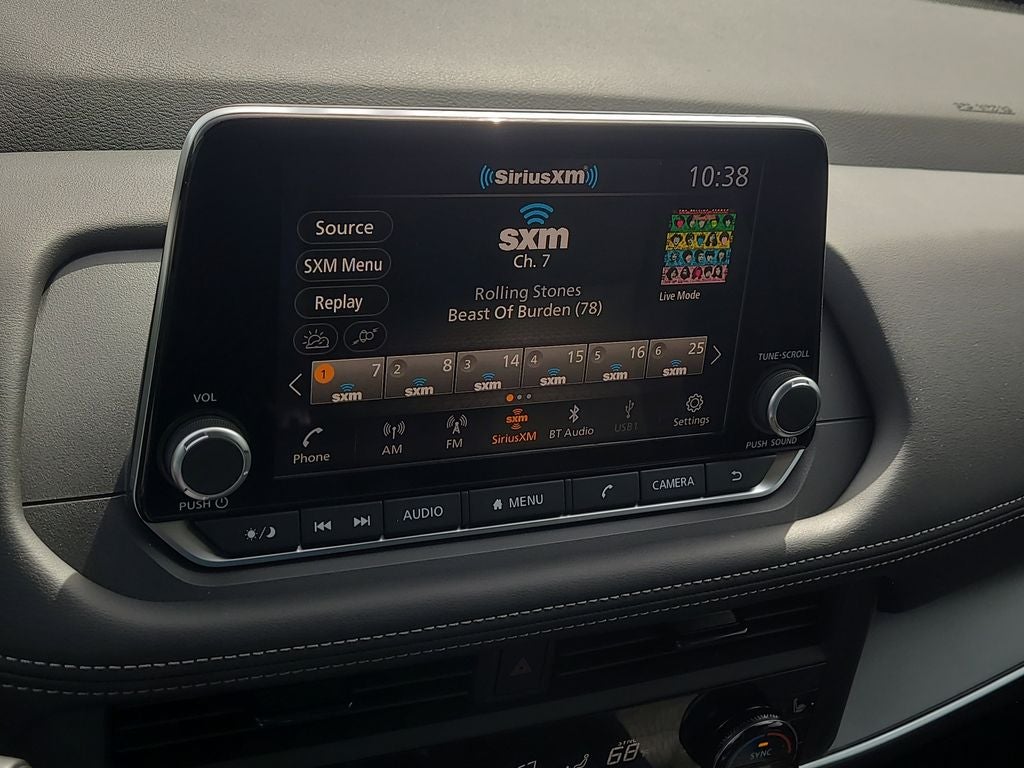 - Radio: AM/FM NissanConnect -inc: 6 speakers plus 2 tweeters, Apple CarPlay, Android Auto, 8" color touch screen display, Bluetooth®, 2 front USB type-C, Wi-Fi hotspot and NissanConnect Services powered by SiriusXM