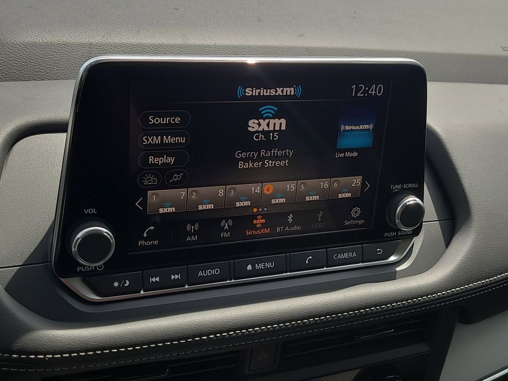 - Radio: AM/FM NissanConnect -inc: 6 speakers plus 2 tweeters, Apple CarPlay, Android Auto, 8" color touch screen display, Bluetooth®, 2 front USB type-C, Wi-Fi hotspot and NissanConnect Services powered by SiriusXM