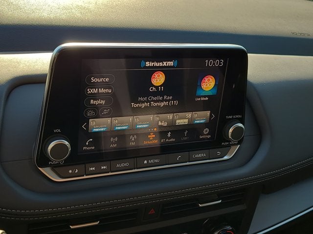 - Radio: AM/FM NissanConnect -inc: 6 speakers plus 2 tweeters, Apple CarPlay, Android Auto, 8" color touch screen display, Bluetooth®, 2 front USB type-C, Wi-Fi hotspot and NissanConnect Services powered by SiriusXM