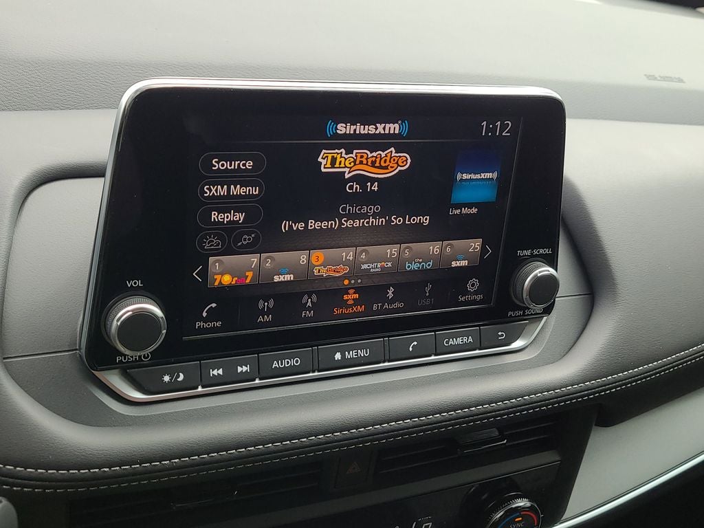 - Radio: AM/FM NissanConnect -inc: 6 speakers plus 2 tweeters, Apple CarPlay, Android Auto, 8" color touch screen display, Bluetooth®, 2 front USB type-C, Wi-Fi hotspot and NissanConnect Services powered by SiriusXM