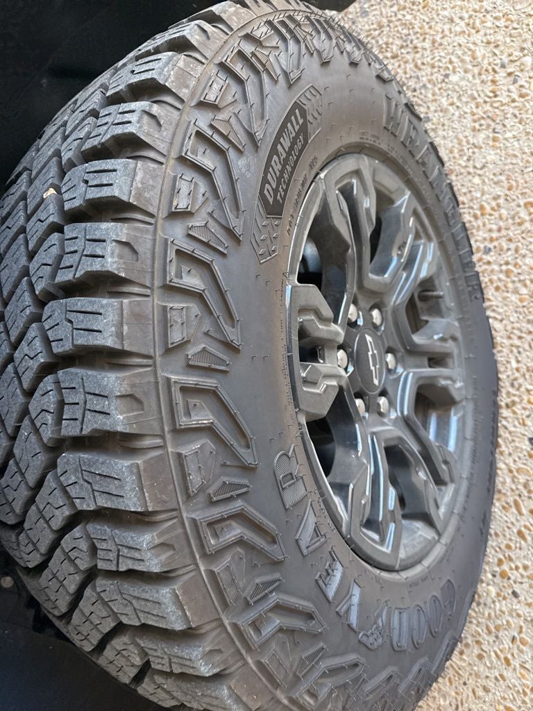 - Tires, LT275/70R18 blackwall Goodyear Wrangler Territory MT